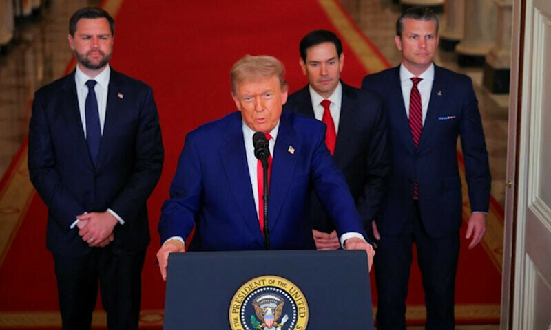 امریکی صدر ڈونلڈ ٹرمپ نے ایران پر امریکی حملوں کے بعد قوم سے تقریباً 3 منٹ کا مختصر خطاب کیا، جس میں انہوں نے ایران کے خلاف کارروائی کو تاریخی قرار دیا۔