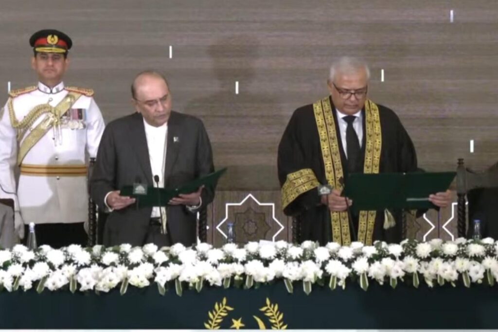 آئینی عدالت کے سربراہ جسٹس امین الدین ایوان صدر میں حلف اٹھایا، صدر مملکت آصف علی زرداری نے آئینی عدالت
