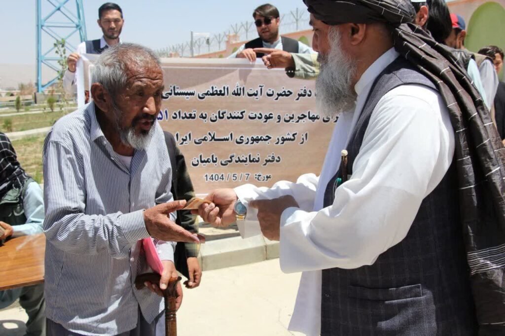 آج آیت اللہ العظمیٰ سیستانی کے دفتر کی طرف سے غذائی اور نقد امداد بامیان صوبے کے مرکز میں ایران اور پاکستان سے واپس آئے ۵۱ مہاجر خاندانوں میں تقسیم کی گئی۔